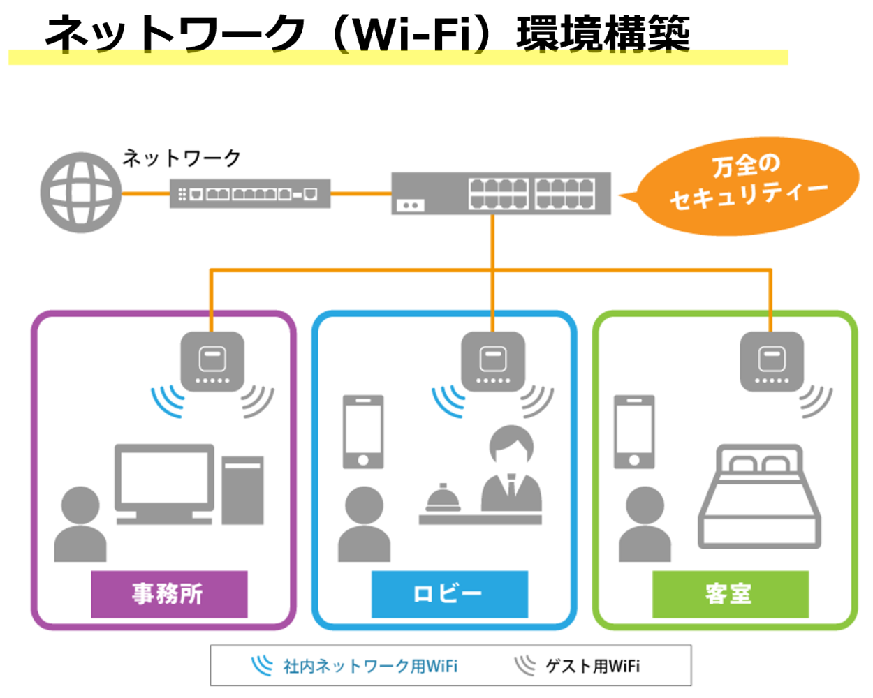 構築ケース2:〈ホテル〉法人用無線アクセスポイント導入で、より繋がりやすいWi-Fi環境を実現
